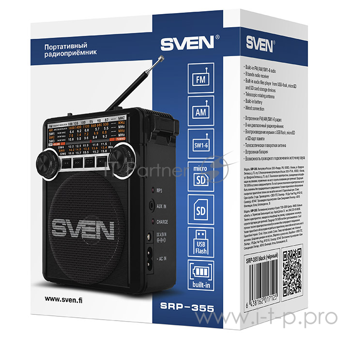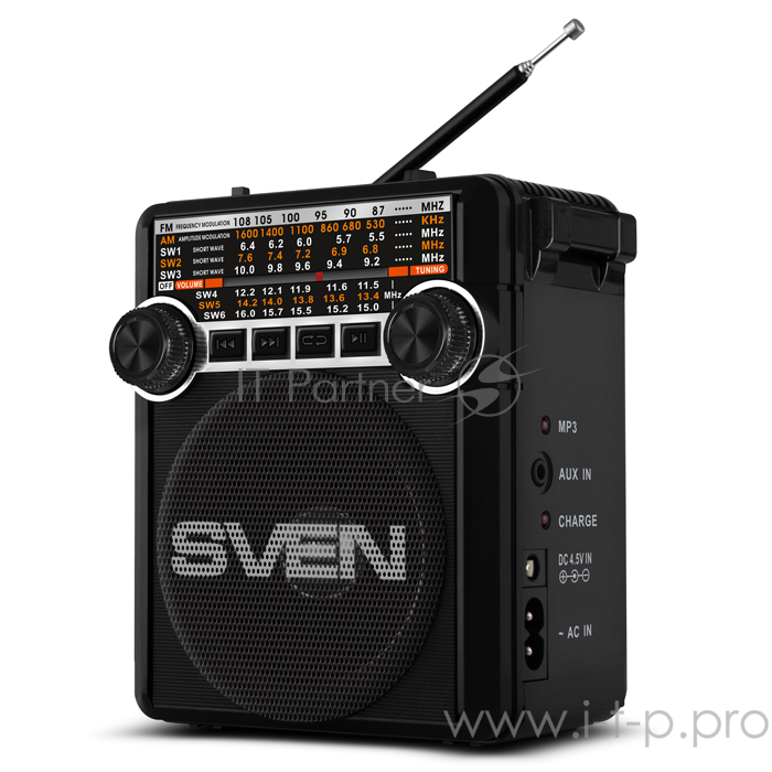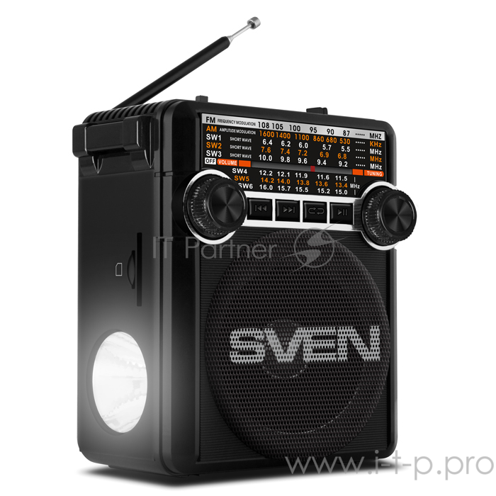 Радиоприемник АС SVEN SRP-355, черный (3 Вт, FM/AM/SW, USB, SD/microSD, фонарь, встроенный аккумулятор) АС SVEN SRP-355, черный (3 Вт, FM/AM/SW, USB, SD/microSD, фонарь, встроенный аккумулятор)