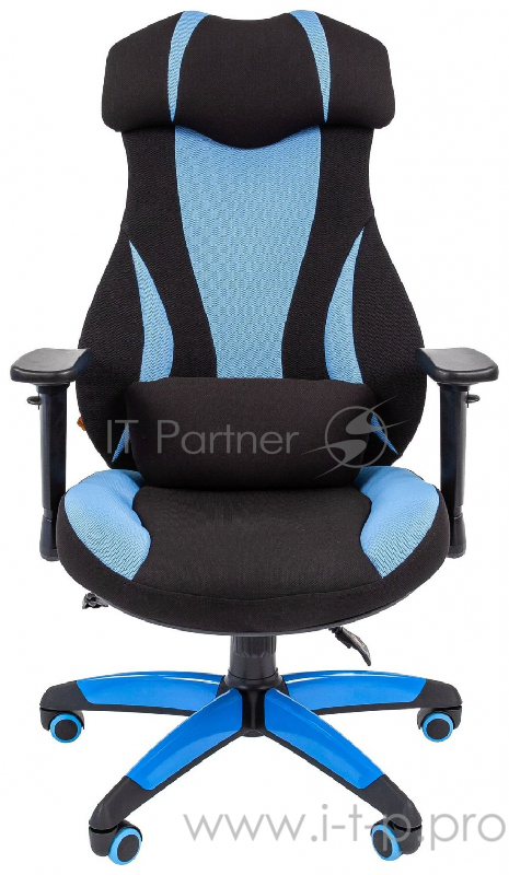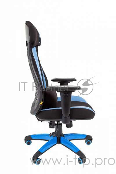 Геймерское кресло Chairman game 14 чёрное/голубое (ткань, пластик, газпатрон 3 кл, ролики, механизм качания)