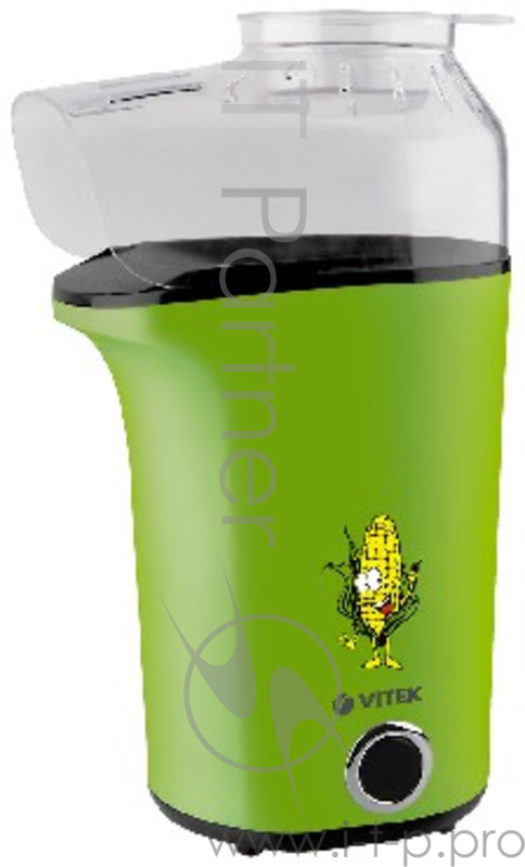 Попкорница VITEK VT-8609(R) Приготовление до 120 г кукурузных зерен Крышка с мерной ложечкой для кукурузных зерен в комплекте Приготовление попкорна горячим воздухом, без масла Прорезиненные ножки против скольжения Растапливание масла в мерной ложечк