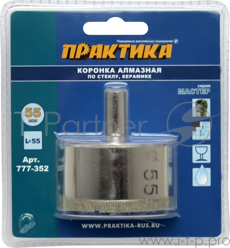 Коронка алм. ПРАКТИКА 777-352 55мм, 1шт., по стеклу и керамике