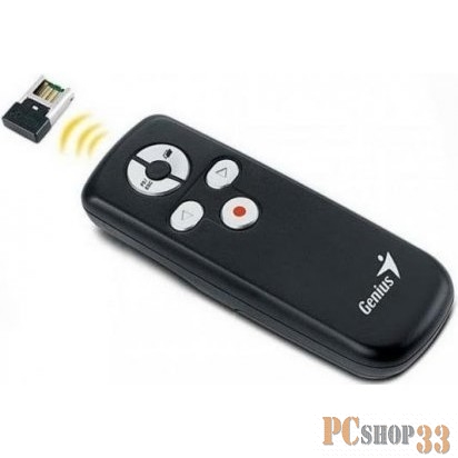 Презентер Genius MEDIA POINTER 100, 5 keys [ESC/F5, Blank, Page Up, Page Down, Laser- Pointer], W 2.4Ghz, 2xAAA, USB, Black. Презентер Genius MEDIA POINTER 100, 5 keys [ESC/F5, Blank, Page Up, Page Down, Laser- Pointer], W 2.4Ghz, 2xAAA, USB, Black.