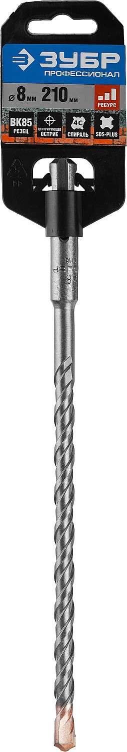 Бур ЗУБР ПРОФЕССИОНАЛ по бетону, хвостовик SDS-Plus, спираль S4, 8x210 мм [29314-210-08_z01]