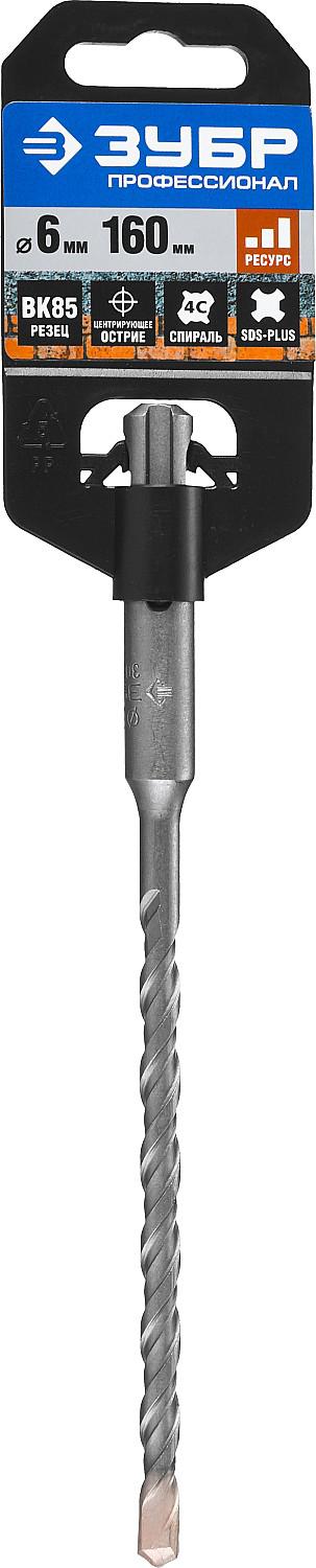 Бур ЗУБР ПРОФЕССИОНАЛ по бетону, хвостовик SDS-Plus, спираль S4, 6x160 мм [29314-160-06_z01]