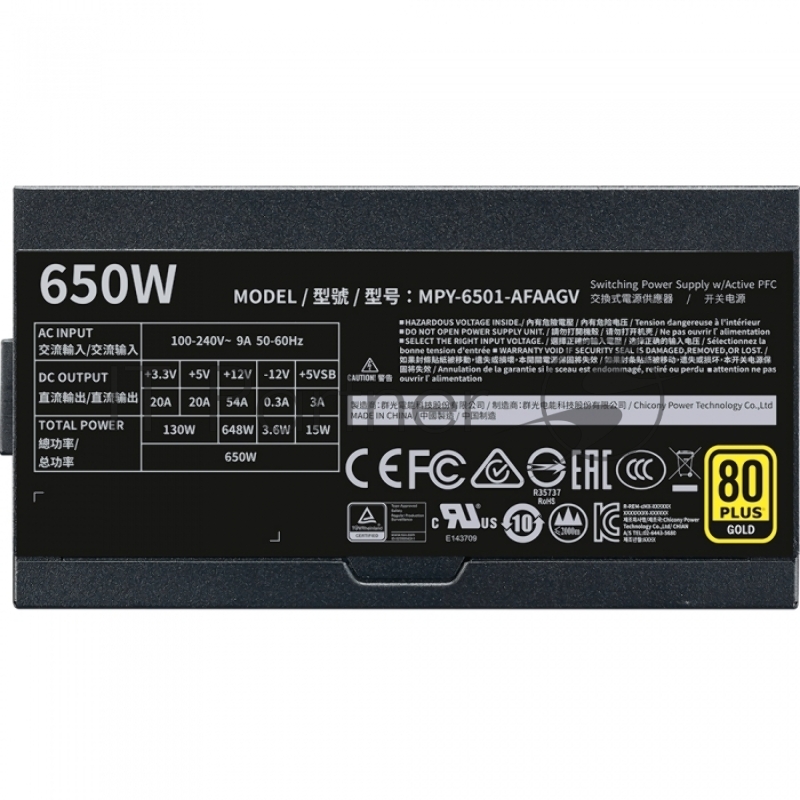 Блок питания 650W Power Supply Cooler Master V650 Gold, 650W, ATX, 140mm, 8xSATA, 4xPCI-E(6+2), APFC, 80+ Gold