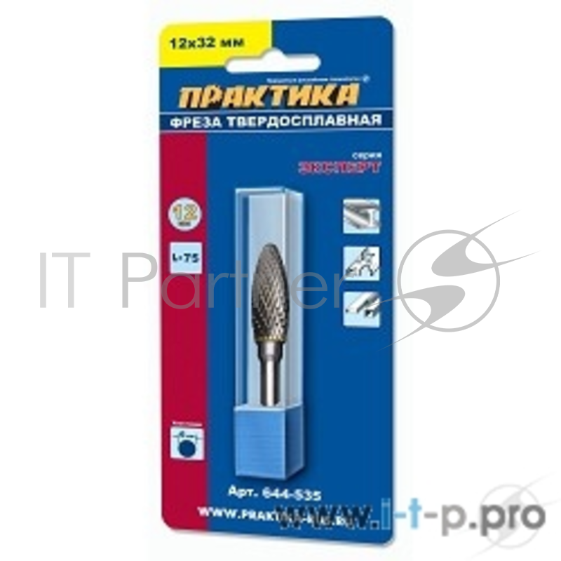 Фрезы (ПРАКТИКА) Фреза по металлу твердосплавная ПРАКТИКА тип H эллипсовидная,12 х 32 мм 644-535