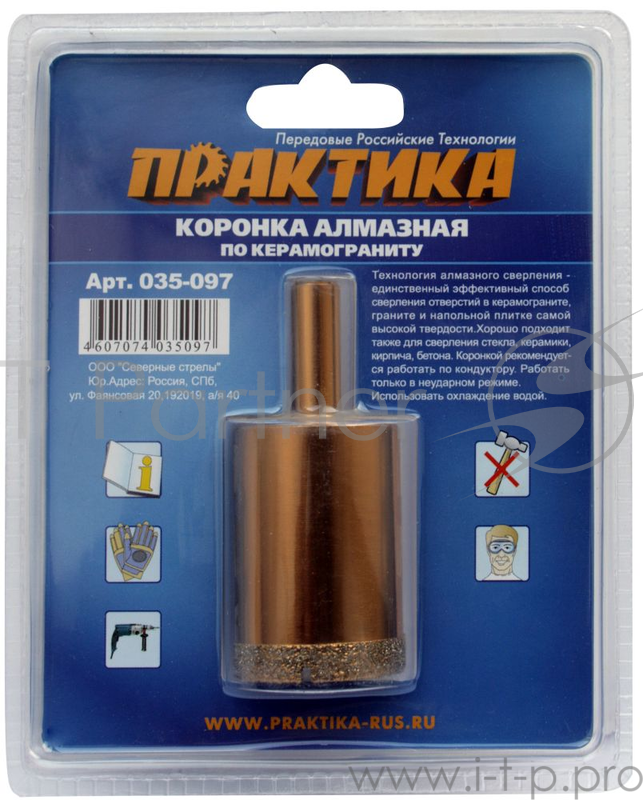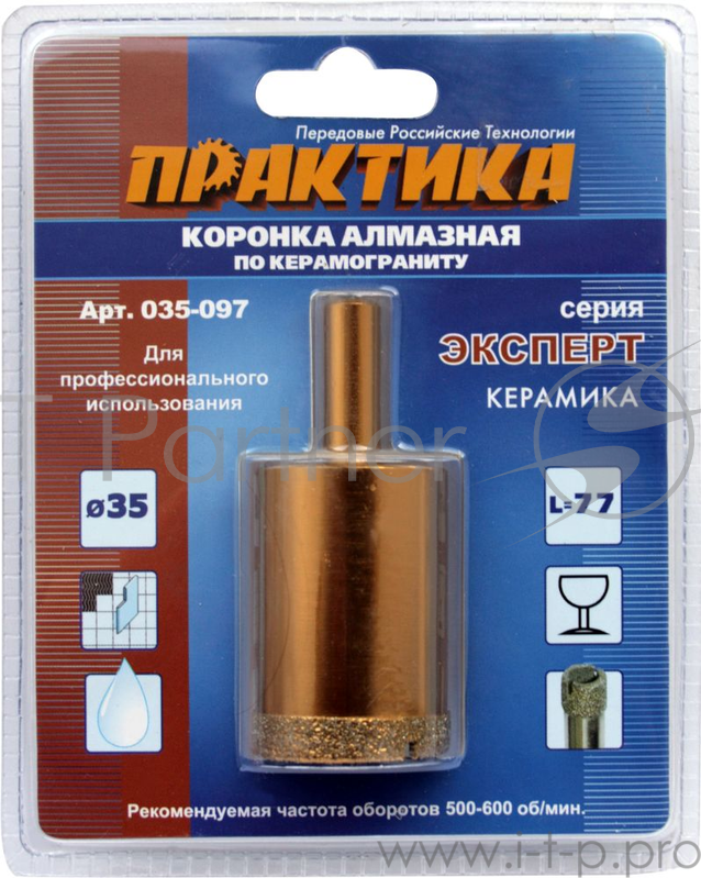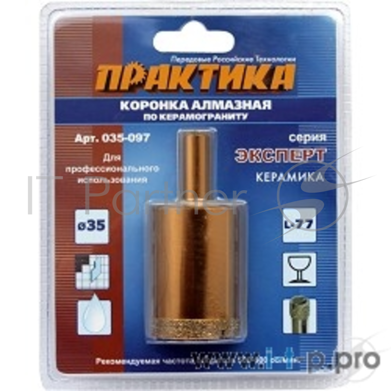 Сверла,коронки,наборы Коронка алмазная по керамограниту ПРАКТИКА ф 35 мм блистер [035-097]