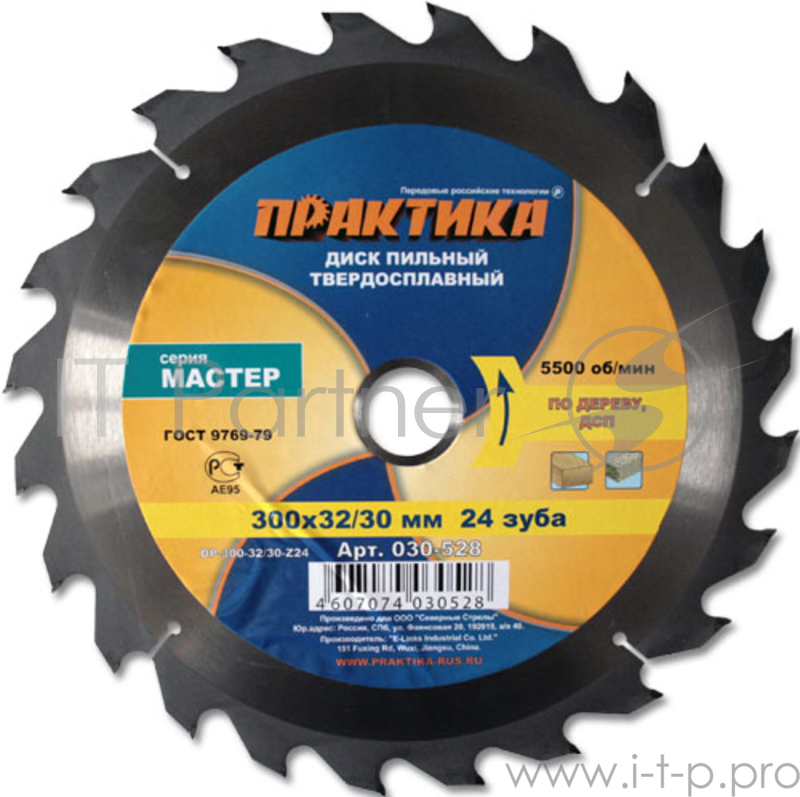Диск пильный по дереву ПРАКТИКА 030-528 DP-300-3230-Z24 300х24x32/30мм T=3.0мм, по дереву, ДСП