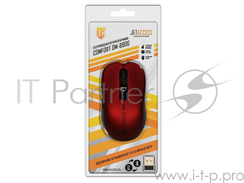 Беспроводная мышь Jet.A Comfort OM-B90G красная (1000/1600dpi, 5 кнопок, USB & Bluetooth)
