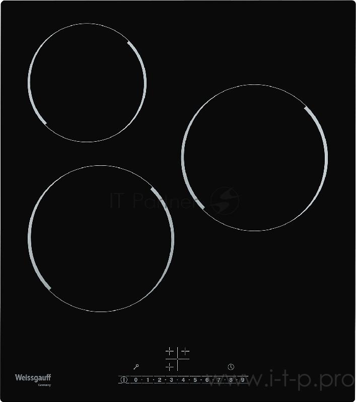 Встраиваемые электрические панели Weissgauff HV 430 BS, 45 см, 3 конфорки, стеклокерамика Vitro Ceramic Glass, сенсорное управление, индикация степени нагрева, таймер, блокировка от детей, черная