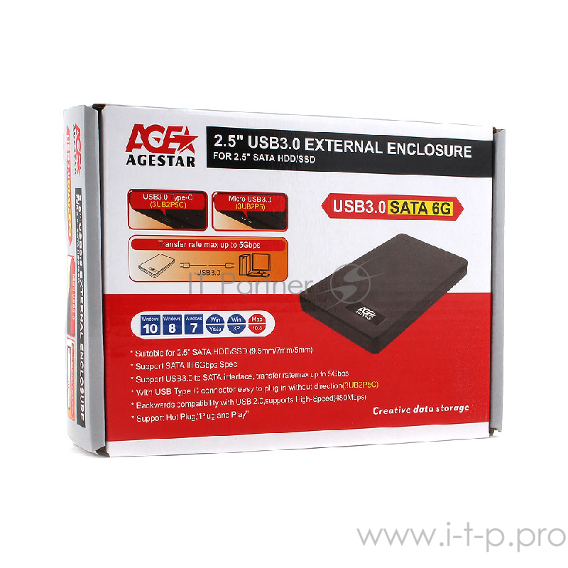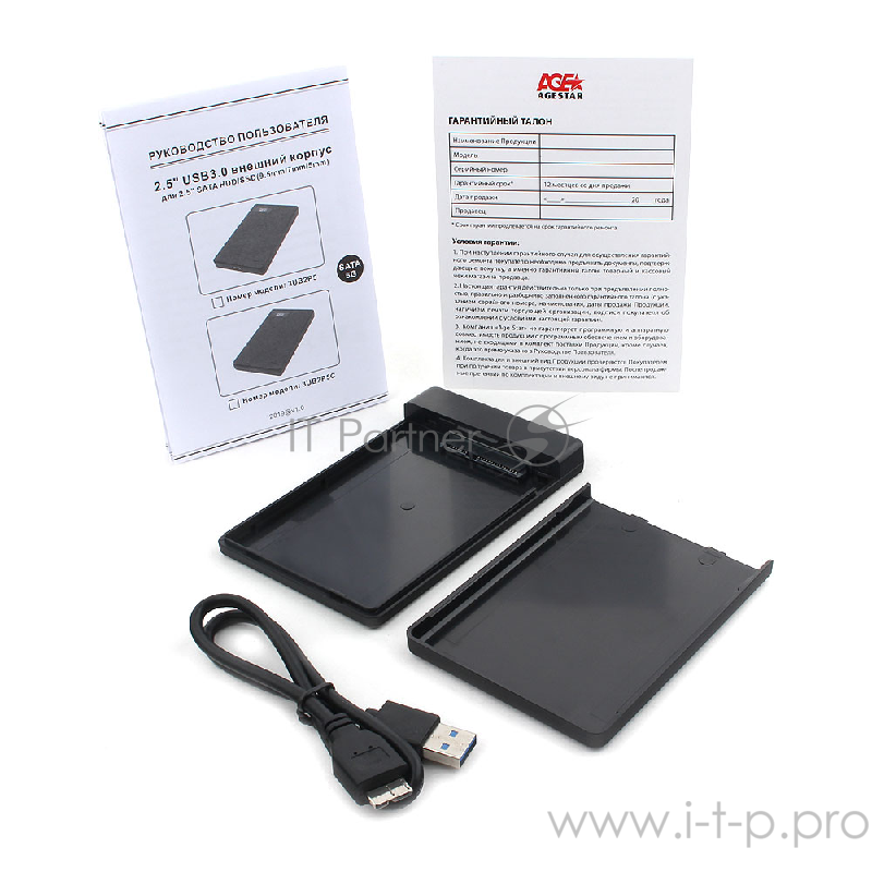USB 3.0 Внешний корпус 2.5"" SATAIII HDD/SSD AgeStar 3UB2P5 (BLACK) пластик, чёрный. UASP
