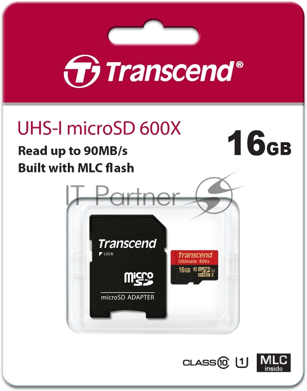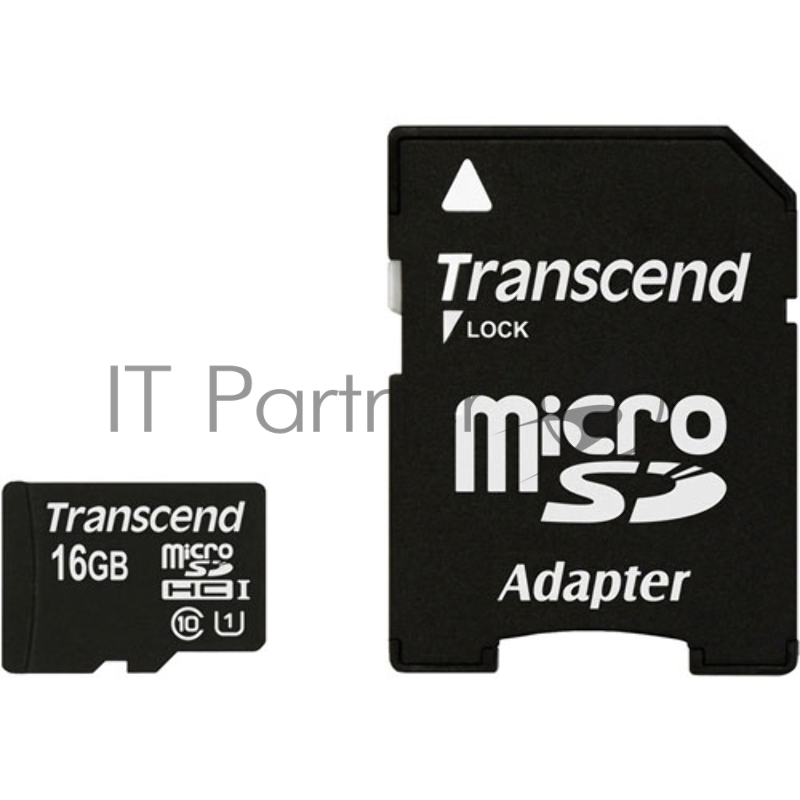 Карта памяти Micro SecureDigital 16Gb Transcend TS16GUSDHC10U1 {MicroSDHC Class 10 UHS-I, SD adapter}