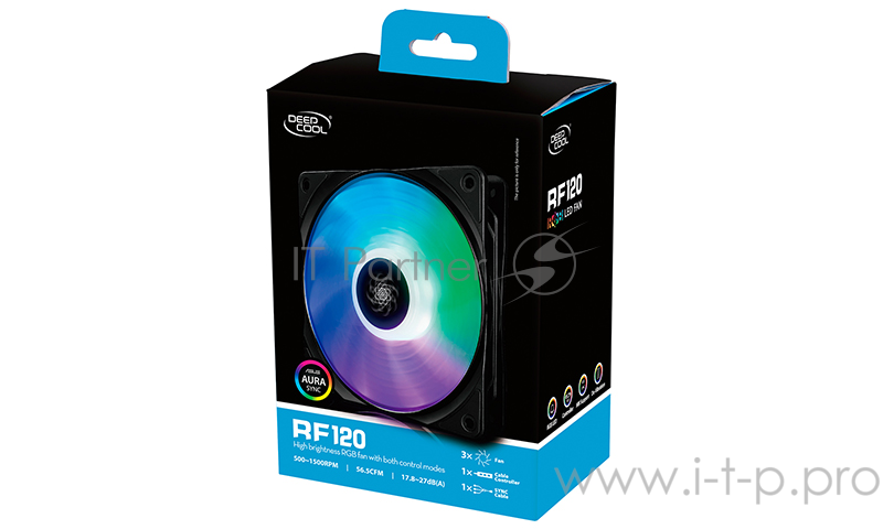 Вентилятор DEEPCOOL RF120 (3 IN 1) RGB 120x120x25мм (16шт./кор, 3xRF120, PWM, пит. от мат.платы и БП, RGB подсветка, 500-1500об/мин) Retail