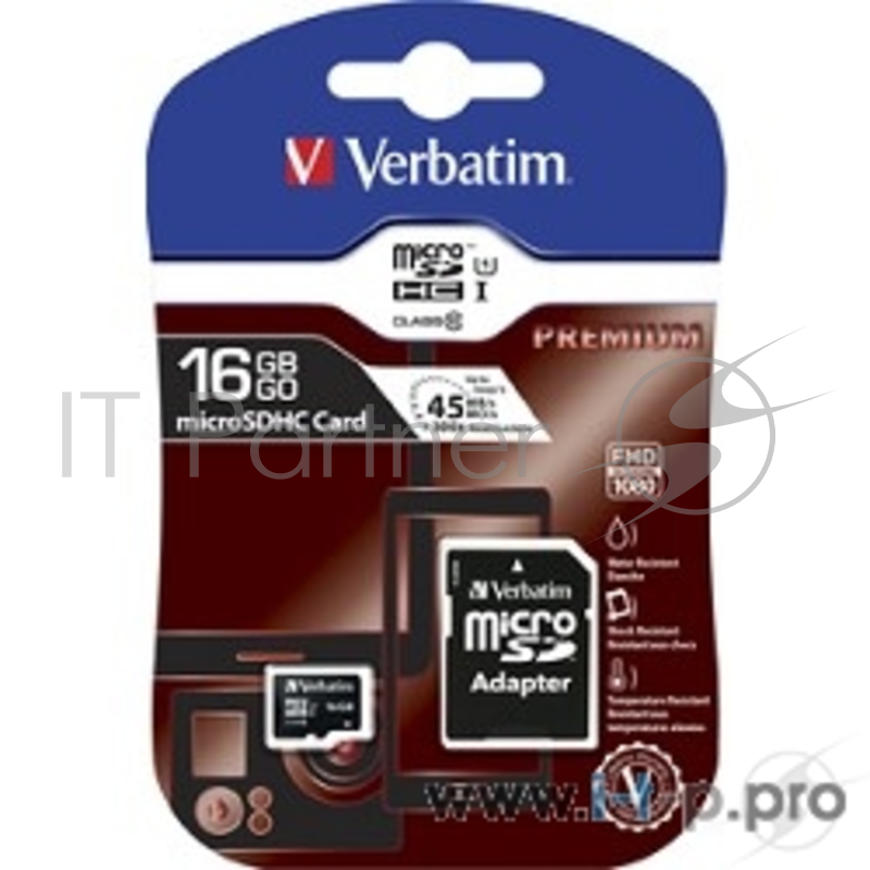 Карта памяти Micro SecureDigital 16Gb Verbatim 44082 {MicroSDHC Class 10 UHS-I, SD adapter}