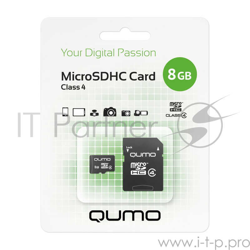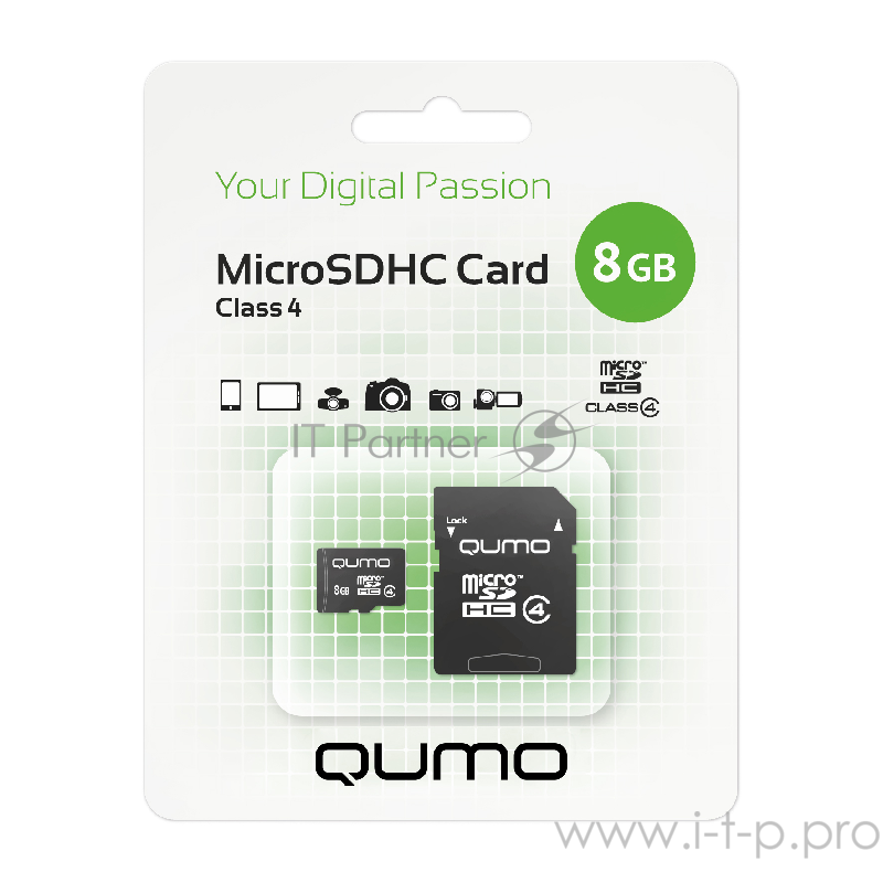 Карта памяти Micro SecureDigital 8Gb QUMO QM8GMICSDHC4 {MicroSDHC Class 4, SD adapter}