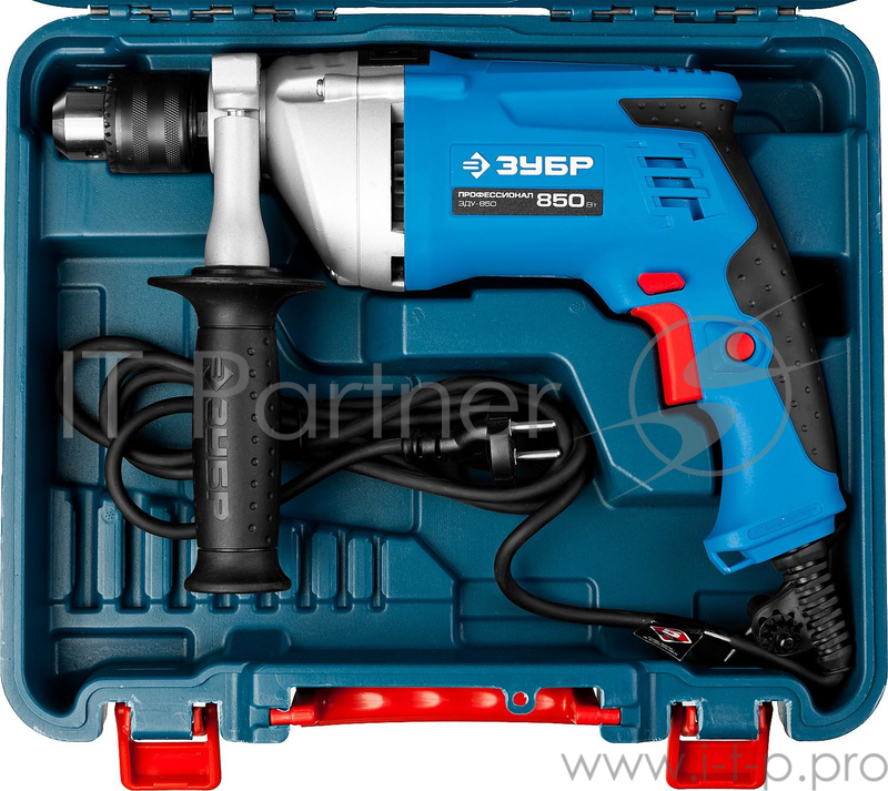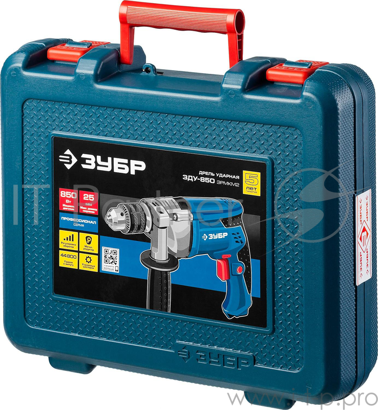 Дрель, Шуруповерт ЗУБР "ПРОФЕССИОНАЛ" ЗДУ-850 ЭРМКМ2 Дрель-ударная ЗДУ-850 ЭРМКМ2 { реверс, мет корпус редуктора, патрон 13мм, реверс, 0-2800об/мин, 0-44800уд/мин, 850Вт,кейс }
