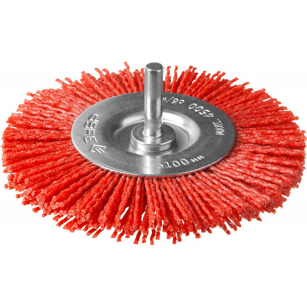 Щетки для дрелей ЗУБР "ПРОФЕССИОНАЛ". Щетка дисковая для дрели, нейлоновая проволока с абразивным покрытием, 100мм 35161-100_z02
