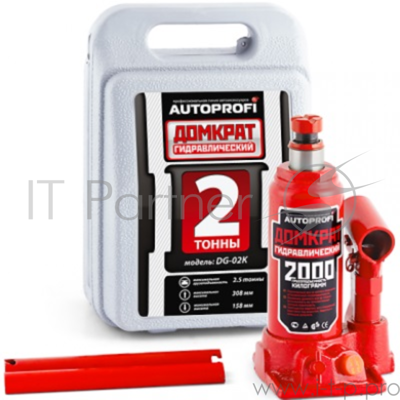 Домкрат AUTOPROFI DG-02K гидравлический бутылочный 2т подъём308мм в кейсе