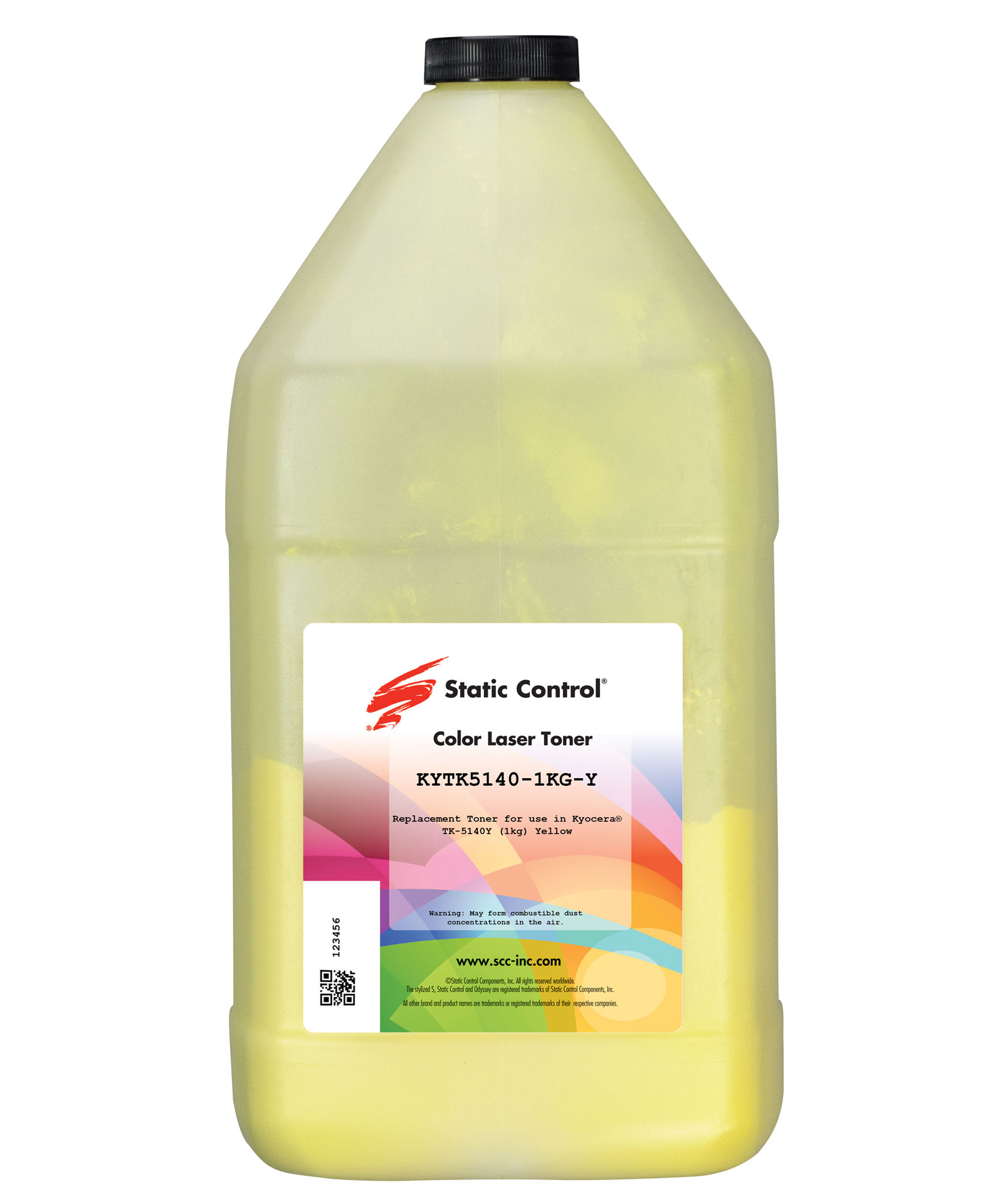 Тонер Static Control KYTK5140-1KG-Y желтый флакон 1000гр. для принтера Kyocera EcoSys-M6030, Kyocera EcoSys-M6530, Kyocera EcoSys-P6130, Kyocera EcoSys-M6035, Kyocera EcoSys-M6535, Kyocera EcoSys-P6035