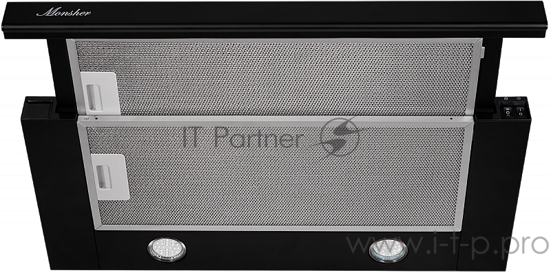 Вытяжка MONSHER TELE II 60 B Встраиваемая вытяжка с выдвижной кареткой, ширина 60 см, отвод/рециркуляция, 480 м3/час, механическое управление, 2 скорости, светодиодное освещение 2х3 Вт, металлические жироулавливающие фильтры, угольный фильтр (опция),