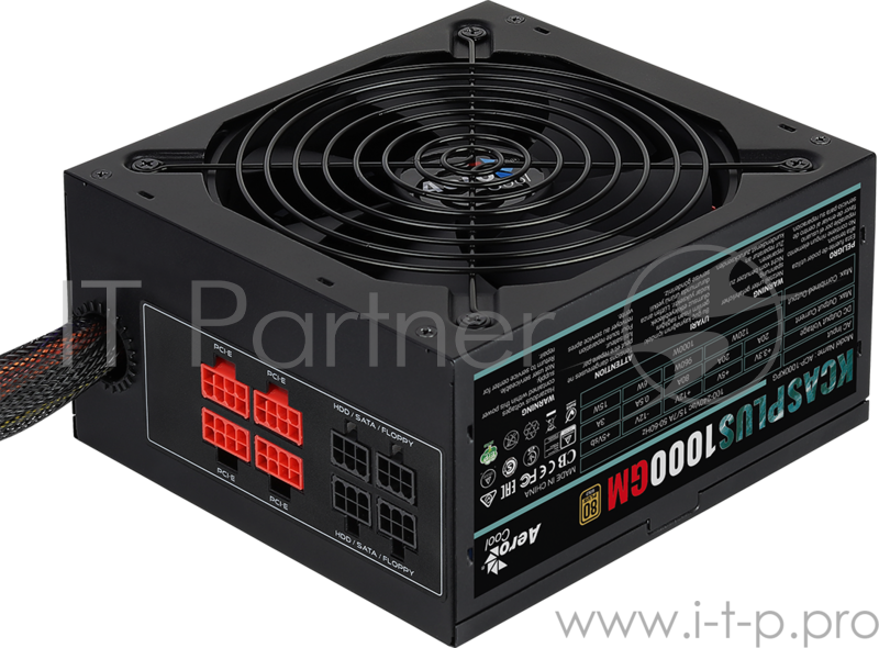 Блок питания Aerocool 1000W Retail KCAS PLUS 1000GM , 80 PLUS Gold, ATX v2.4, модульный, fan 14cm, 6x PCI-E [6+2-Pin], 10x SATA, 6x MOLEX