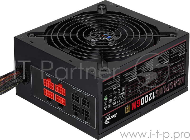 Блок питания Aerocool 1200W Retail KCAS PLUS 1200GM , 80 PLUS Gold, ATX v2.4, модульный, fan 14cm, 8x PCI-E [6+2-Pin], 10x SATA, 6x MOLEX