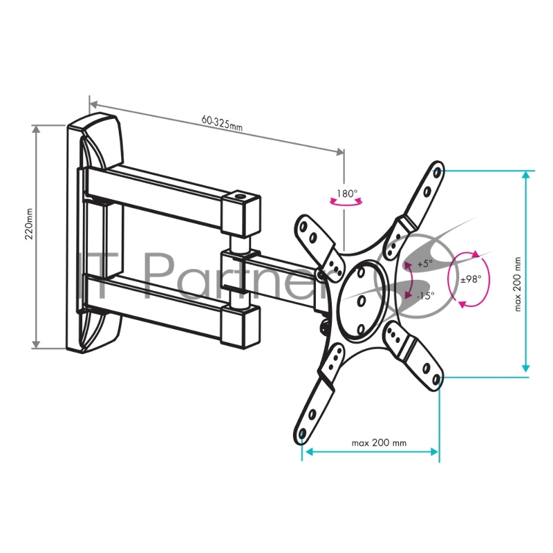 Кронштейн VLK Trento 105 black Максимальная нагрузка 15 кг диагональ ТВ 15-42 дюйм