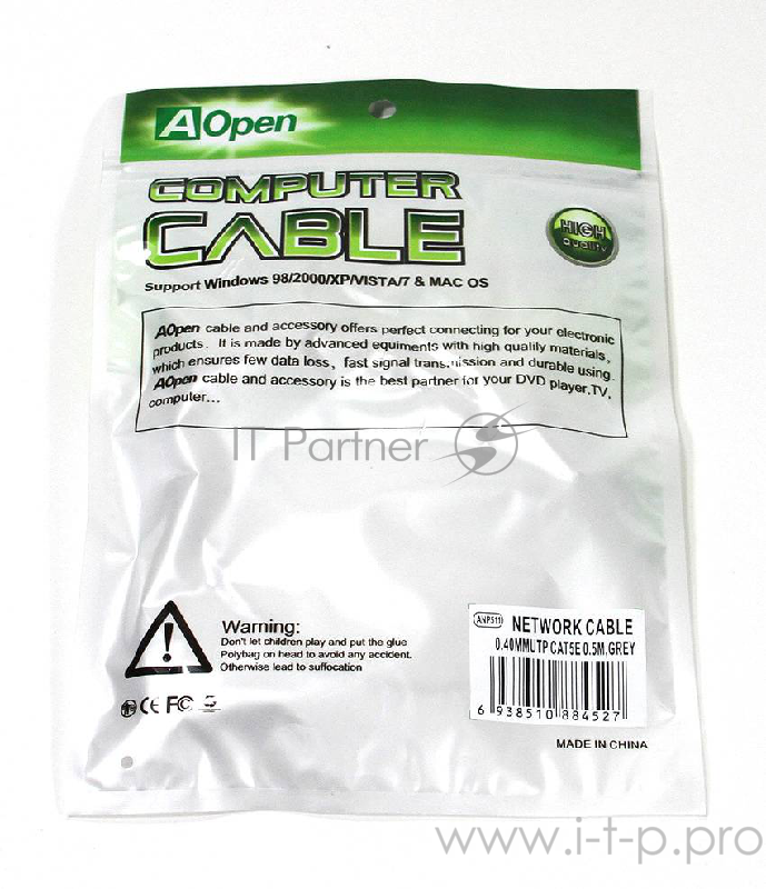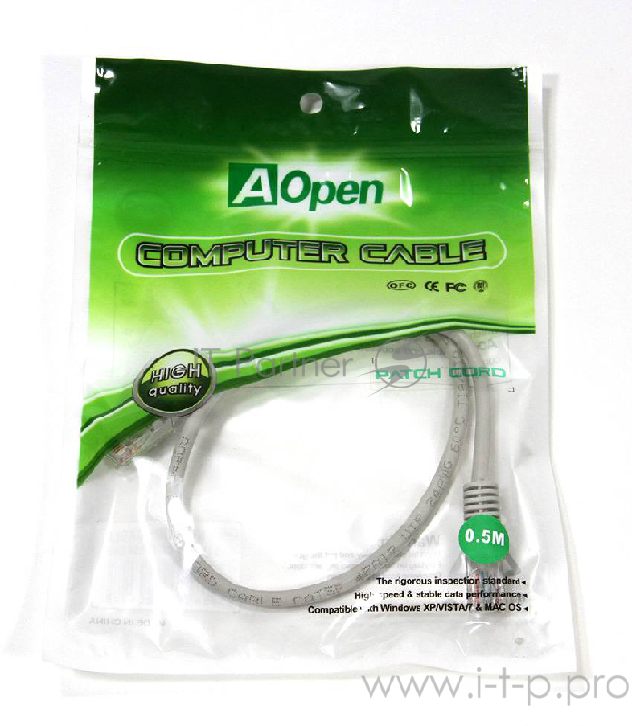 Коммутационный шнур Патчкорд литой Aopen/Qust ANP511_0.5M UTP кат.5е 0.5м серый