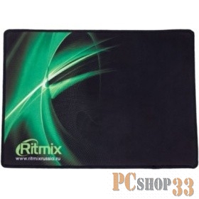 Коврики RITMIX MPD-055 Gaming Black Green {335*260*3 mm, игровая поверхность (Ковер для мыши), нескользящая основа из натурального каучука, тканевая поверхность, простроченные края}