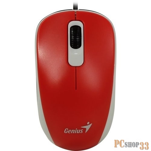[Мышь] Genius Мышь DX-110, USB, оптическая, разрешение 1000 DPI, 3 кнопки, кабель 1.5m, для правой/левой руки Цвет: красный