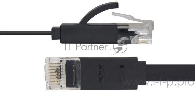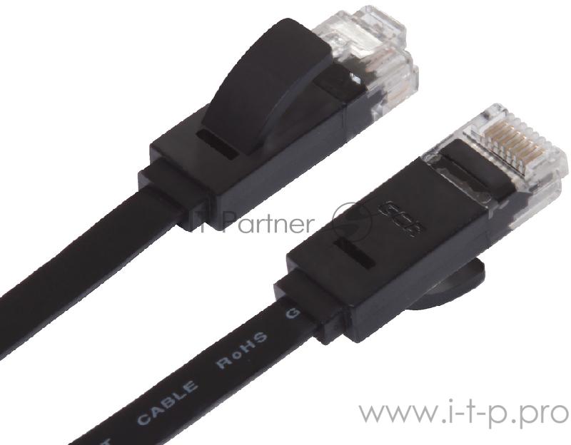 Патч-корд Greenconnect плоский прямой PROF 3.0m UTP медь, кат.6, черный, позолоченные контакты, 30 AWG, Premium ethernet high speed 10 Гбит/с, RJ45, T568B (GCR-LNC616-3.0m)