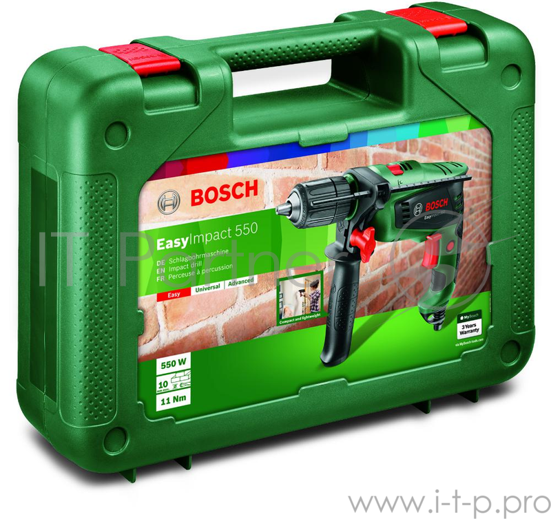 Дрель Bosch EasyImpact 550 0603130020, ударная (550Вт, 3000об./мин., 33000уд./мин., быстроз.) + кейс