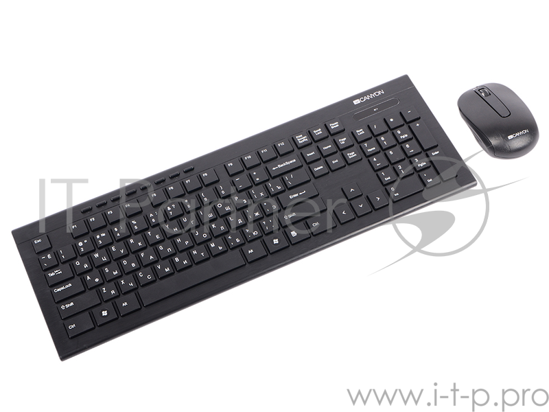 Клавиатура CANYON CNS-HSETW4RU, Multimedia 2.4GHZ wireless combo-set, 104 keys, slim and brushed finish design, chocolate key caps, RU layout (black)