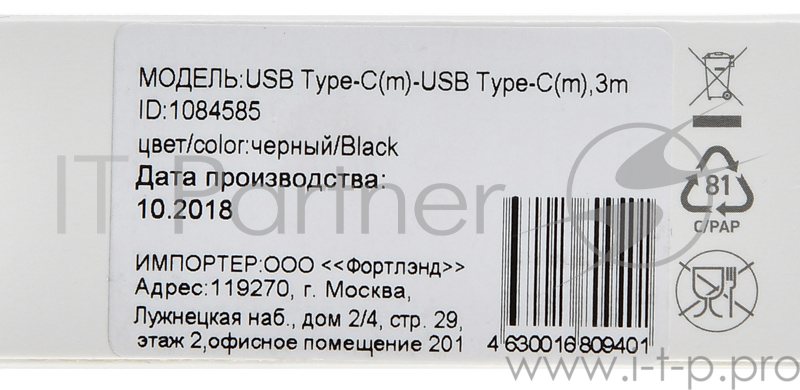 Кабель Digma Power Delivery 60W USB Type-C (m) USB Type-C (m) 3м черный