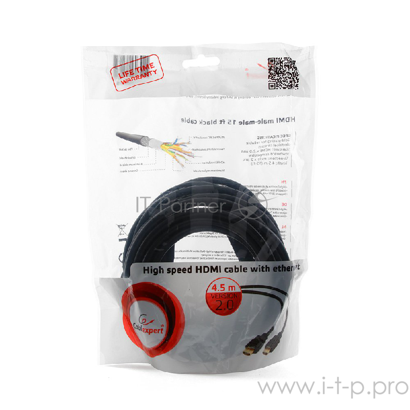 Кабель HDMI Gembird, 4.5м, v1.4, 19M/19M, черный, позол.разъемы, экран, пакет CC-HDMI4-15