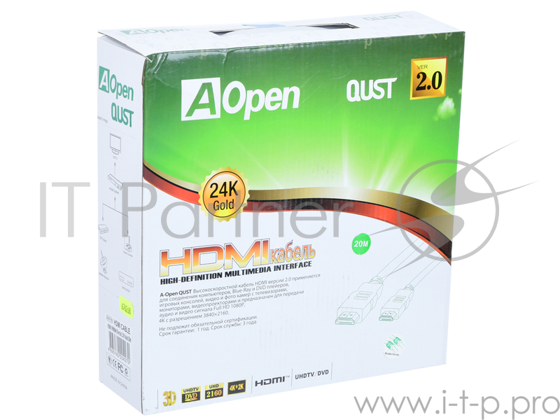 Кабель HDMI 19M/M ver 2.0, 20М, 2 фильтра Aopen