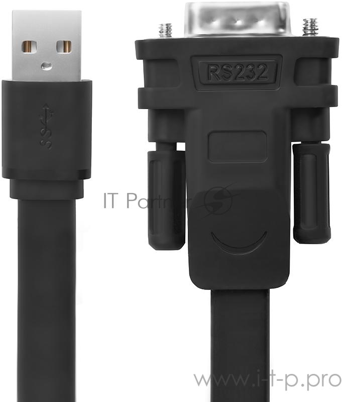 Конвертер-переходник Greenconnect 0.5m плоский, черный, позолоченные коннекторы, 28/26 AWG, USB 2.0 AM / DB9 RS-232 PRGreenconnect Конвертер-переходник 3.0m плоский, черный, позолоченные коннекторы, 28/26 AWG, USB 2.0 AM / DB9 RS-232 PROF GCR-UOC5M-B