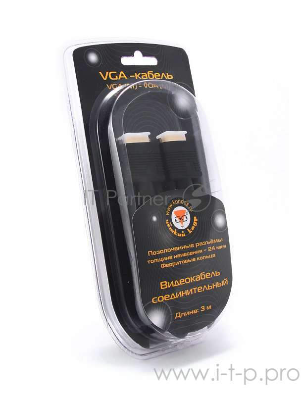 Кабель Konoos KC-PPVGA-3, Кабель VGA 15M/15M, 3.0м, черный, тройной экран, позол.разъемы, феррит.кольца