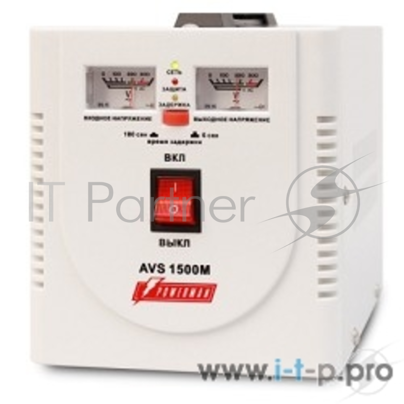 Стабилизатор напряжения Powerman AVS 1500M White (220В±8% 1500ВА,12А,КПД 98%,. индикация вх./вых.)