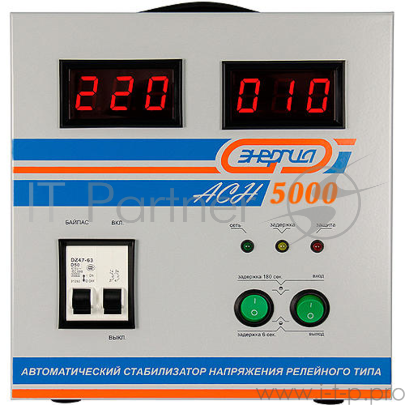 Стабилизатор ЭНЕРГИЯ АСН-5000 с цифр. дисплеем кВА 5 Напряжение входа (рабочее) В 140-260 Напольный