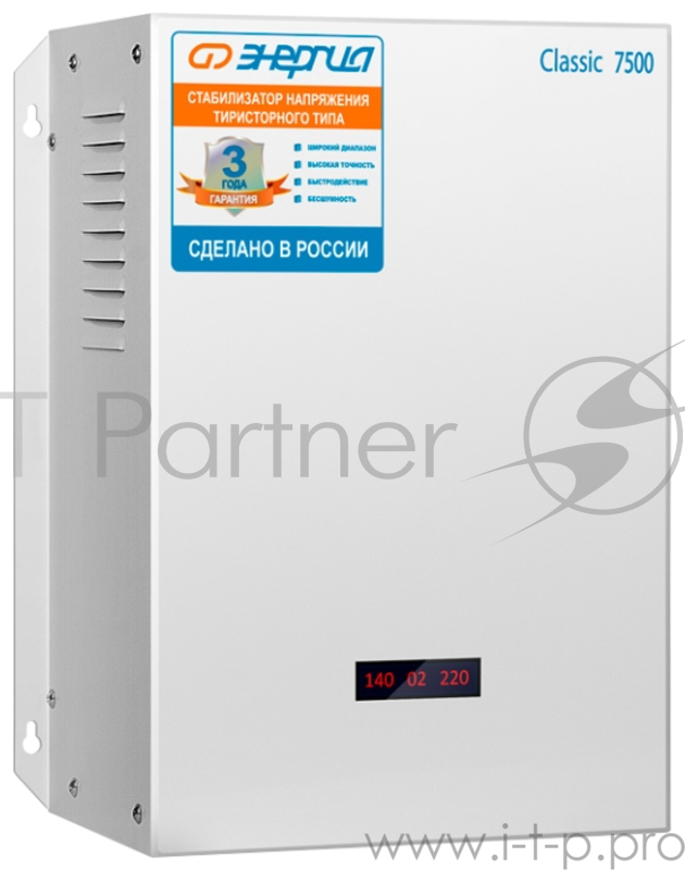 Стабилизатор ЭНЕРГИЯ 7500 Classic КВА 7,5 Входное напряжение В 125-254