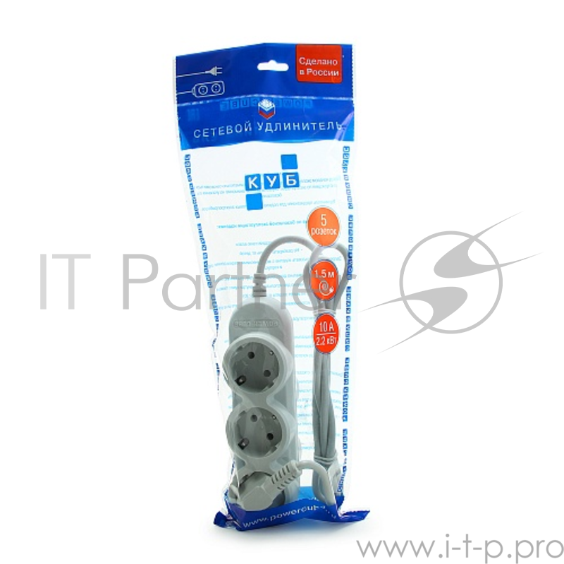 Бытовой удлинитель PowerCube, 3+2 розетки, 2200 Вт, 10 А, 1.5 м