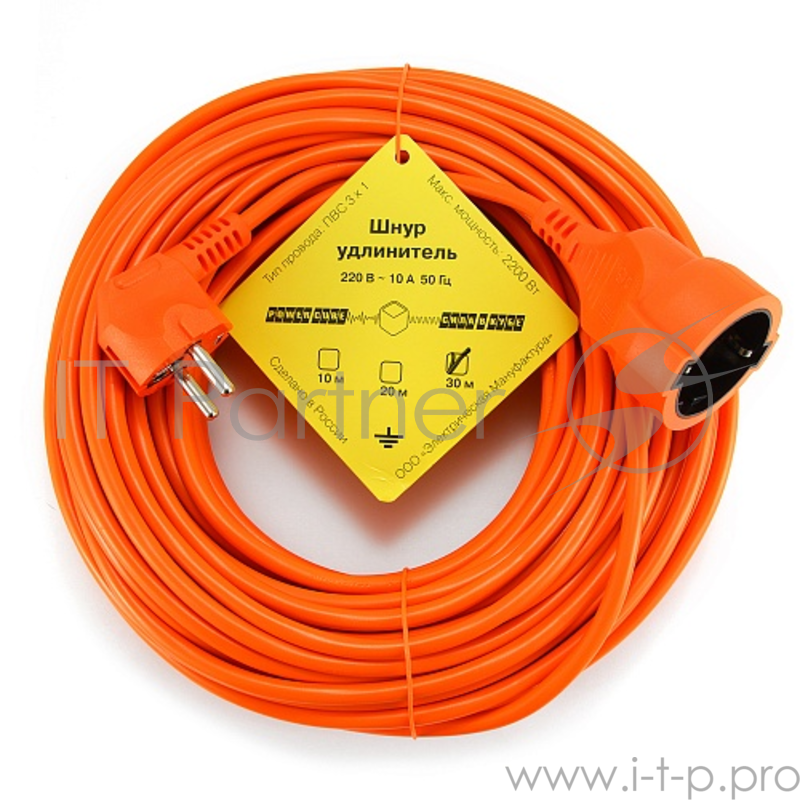 Удлинитель в бухте ""PowerCube"" 10А/2,2 кВт, розетка с заземлением, 30м, оранжевый
