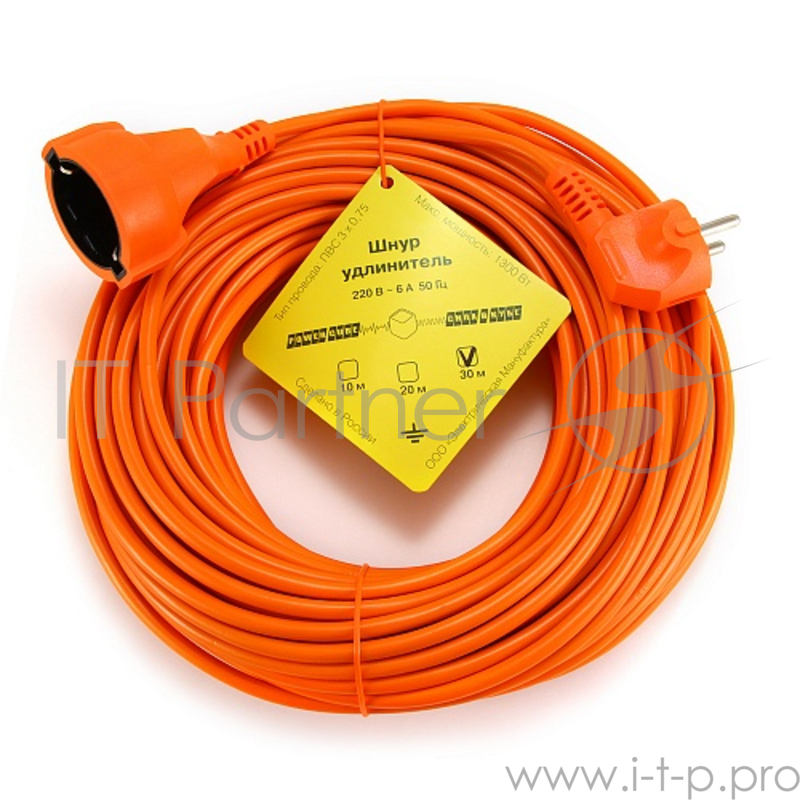 Удлинитель в бухте ""PowerCube"" 6А/1,3 кВт, розетка с заземлением, 30м, оранжевый
