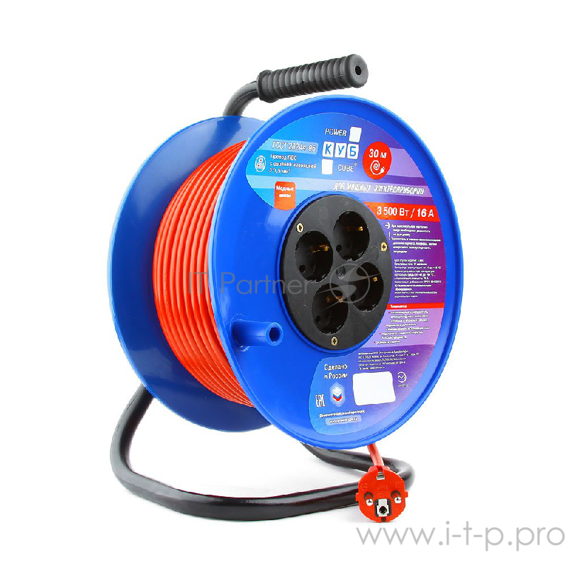Удлинитель на катушке ""PowerCube"" 16А/3,5 кВт, 40м, 4 розетки с/з