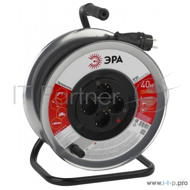 Удлинитель силовой ЭРА Б0035321 RM-4-3x1.5-40m-IP44 c заземлением 4 гн КГ 3х1,5 металлическая катушка