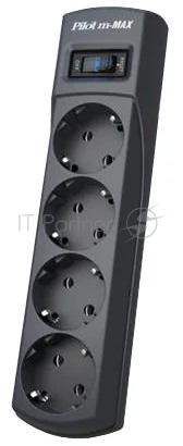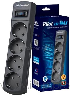Сетевой фильтр Pilot m Max 4 розетки (евро с заземлением), 15А/3.3кВа, автомат, 5 м, черный Surge protector Pilot m Max 4 euro outlets, 15А/3.3кВа, 5m, black