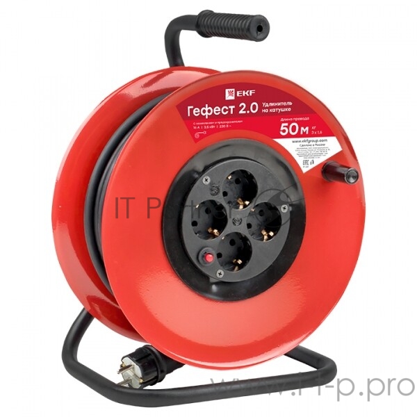 Удлинитель на катушке EKF UKG02-16-R315-4-50 "Гефест 2.0" 4 гнезда 50м с заземлением и предохранителем КГ 3*1,5 16А/3,5кВт PROxima