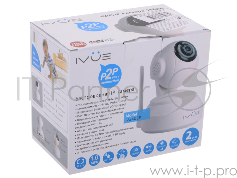 Камера IVUE IV2405P. Внутренняя WiFi поворотная IP камера видеонаблюдения 1 MPX, P2P, Micro SD