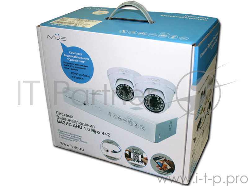 Комплект видеонаблюдения IVUE D5004 AHC-B2 матрица 1/4'' HD CMOS объектив 3,6мм ИК подсв.ноч.до20м