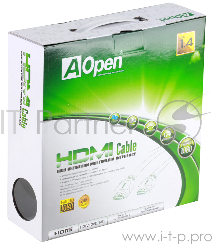 Кабель Aopen Кабель HDMI 19M/M+2 фильтра 1.4V+3D/Ethernet 20m (ACG511D-20M)